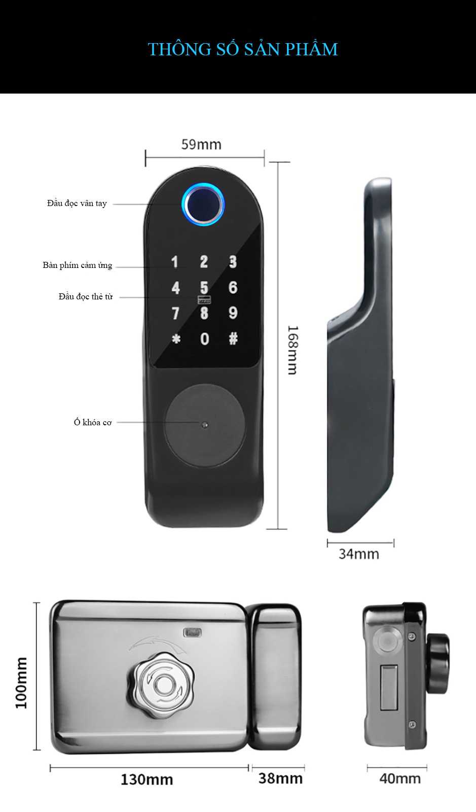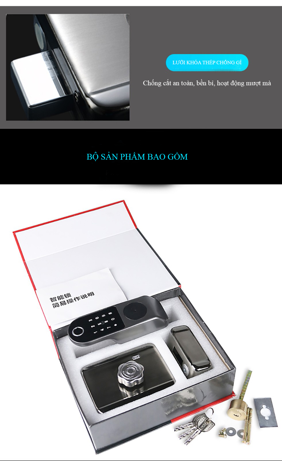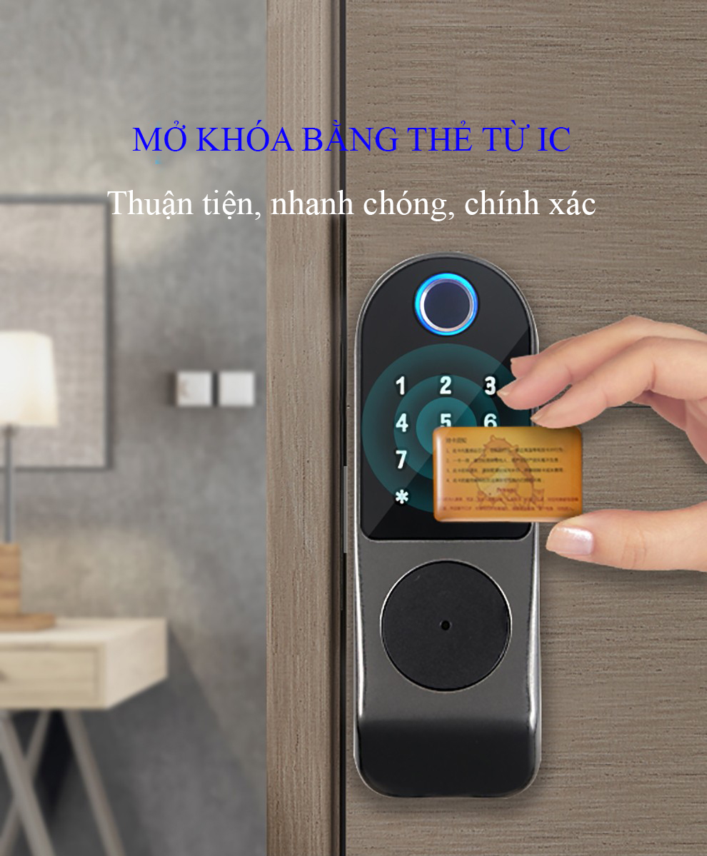 - Đầu đọc vân tay bán dẫn, thẻ từ , mã số, chìa khóa cơ, điều khiển từ xa (mở rộng) và kết nói mở cửa từ xa thông qua APP di động.